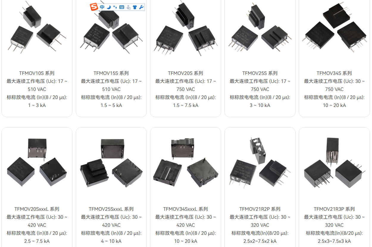 熱保護型壓敏電阻(TFMOV)是壓敏電阻(MOV)與熱保護脫離部件的組合。MOV存在老化 特性,TFMOV能夠在MOV劣化或失效時,通過熱保護部件的動作將MOV從主回路中脫離。常用于光伏逆變器,通信設備,機房電源等對可靠性和耐候性要求高的場所。
