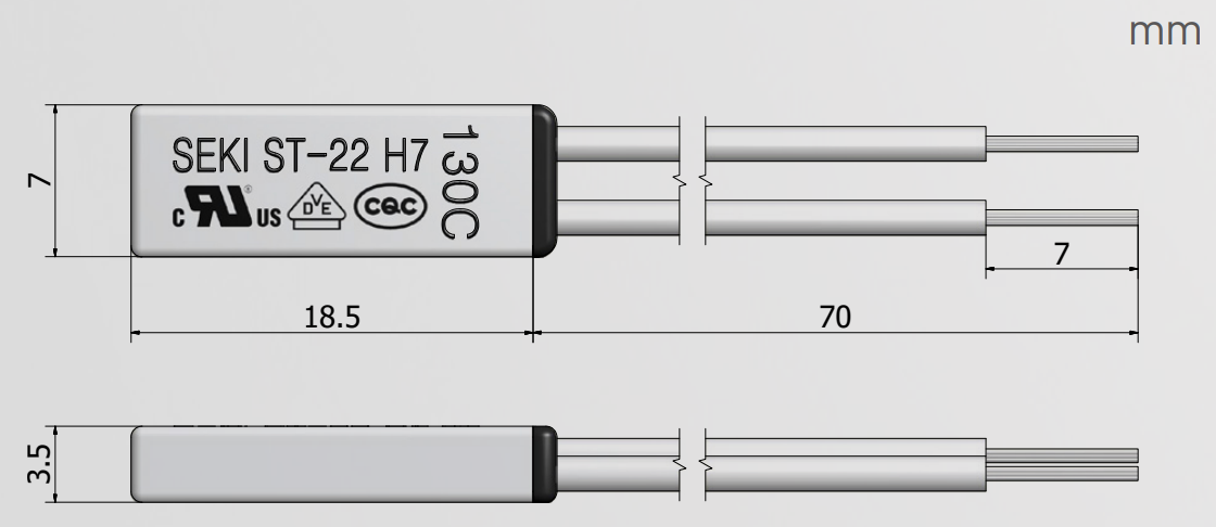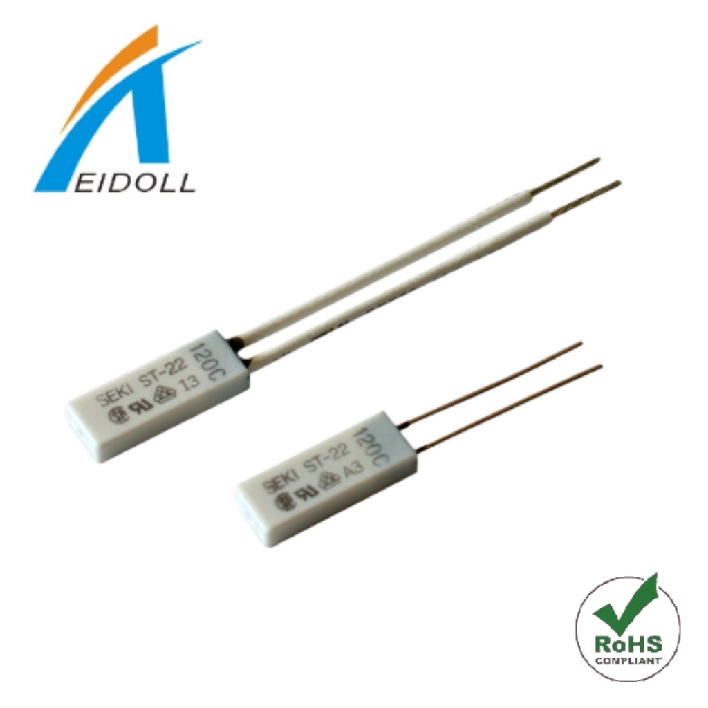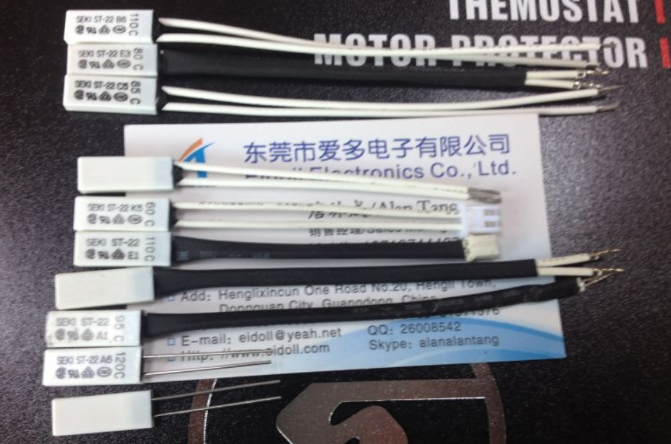東莞市愛多電子有限公司銷售韓國世紀SEKI ST-22各型號溫控開關,長期優勢庫存,質量穩定,復位溫度公差非常小,基本在±2℃范圍內,是高精度電子產品的熱保護首選產品。該產品有P型,W型兩種選擇模式。線材長度可以定制,可以加工端子或者是絕緣套等。如果有需要,請來電詳詢。具體規格如下: