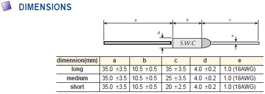 Dongguan Eidoll Elect. Co., Ltd. sales the fuse of SWC,  The S.W.C SW-1XX Series Specification Data: