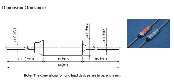 2) Part number indicates thermal cutoffs with standard lead lengths. For long lead length type, add the suffix "-1" at the end of the part number.